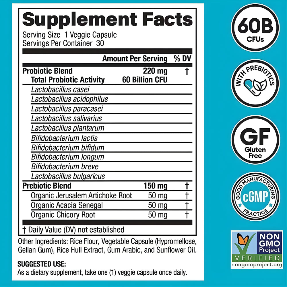 - Probióticos: toma 1 cápsula al día, idealmente con un vaso de agua, como parte de tu rutina diaria.
