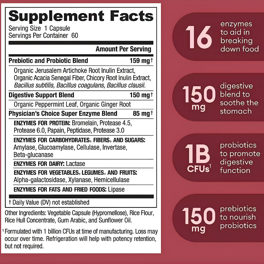 Enzimas Digestivas: 60 cápsulas