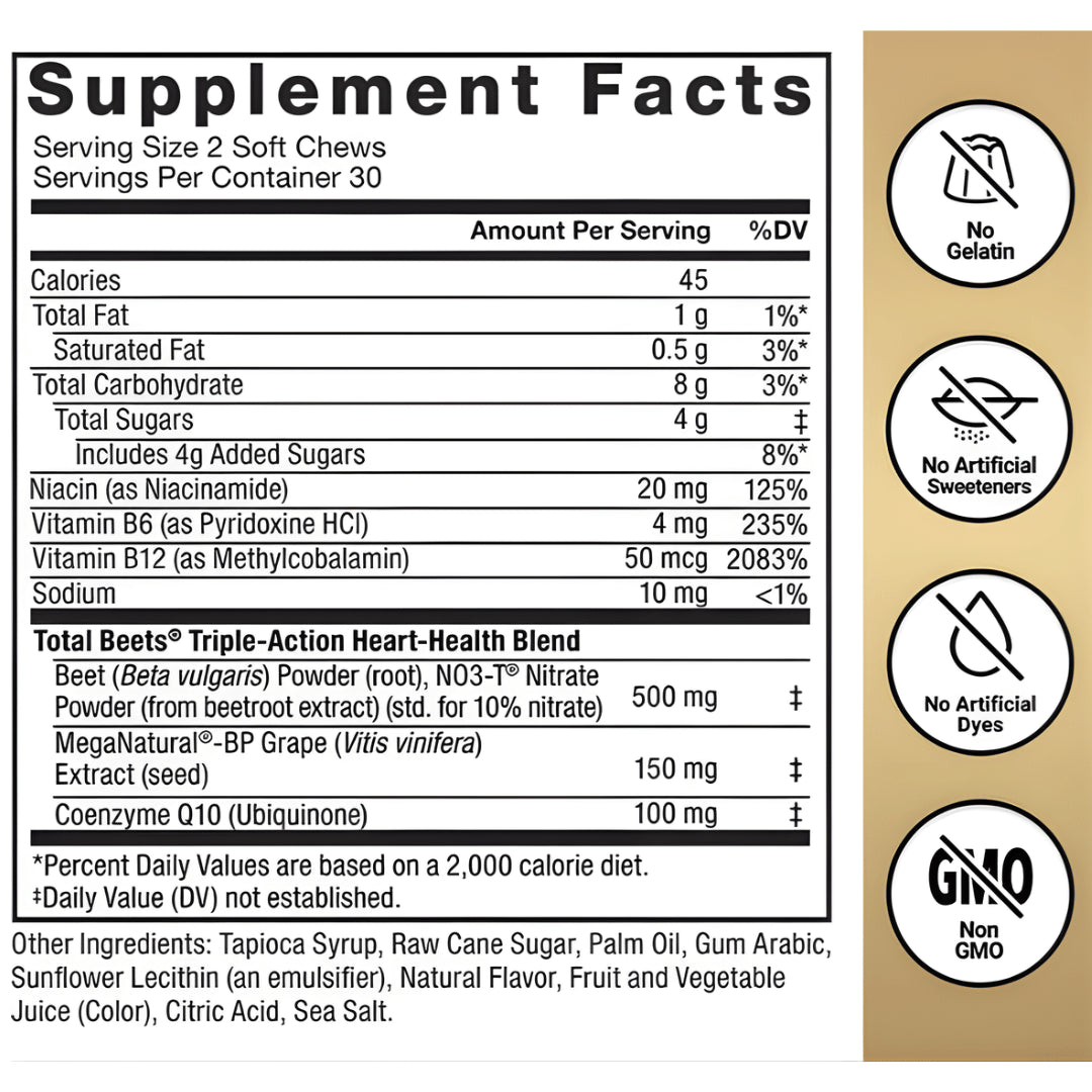 Total Beets™ es un suplemento dietético, pensado como apoyo dentro de un estilo de vida saludable. No sustituye una alimentación equilibrada, la atención médica ni los tratamientos indicados por un profesional.
